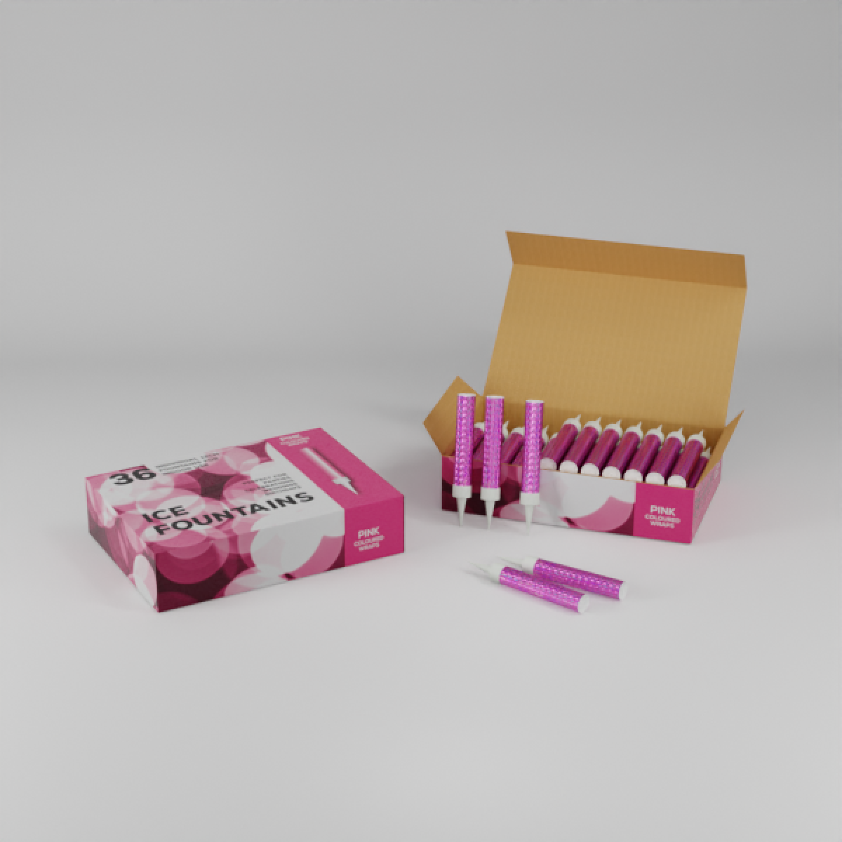36 x Ice Fountains in a Box - Pink Holographic Wrapper